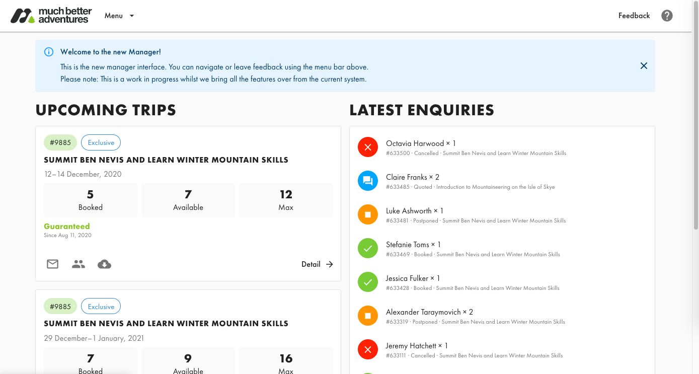 Trips Manager is where you can view the status of your trips on the MBA platform. In this guide we'll give you an overview of its features.