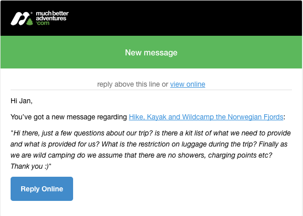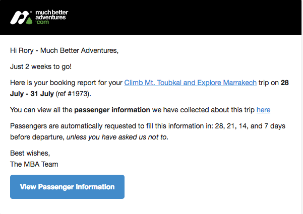 We'll also send you alerts when customers make any payment towards your trip, as well as pre-trip notifications with links to your booking reports in the run up to your departures.
