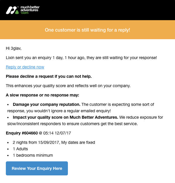 If you have not accepted a booking request within 24 hours.